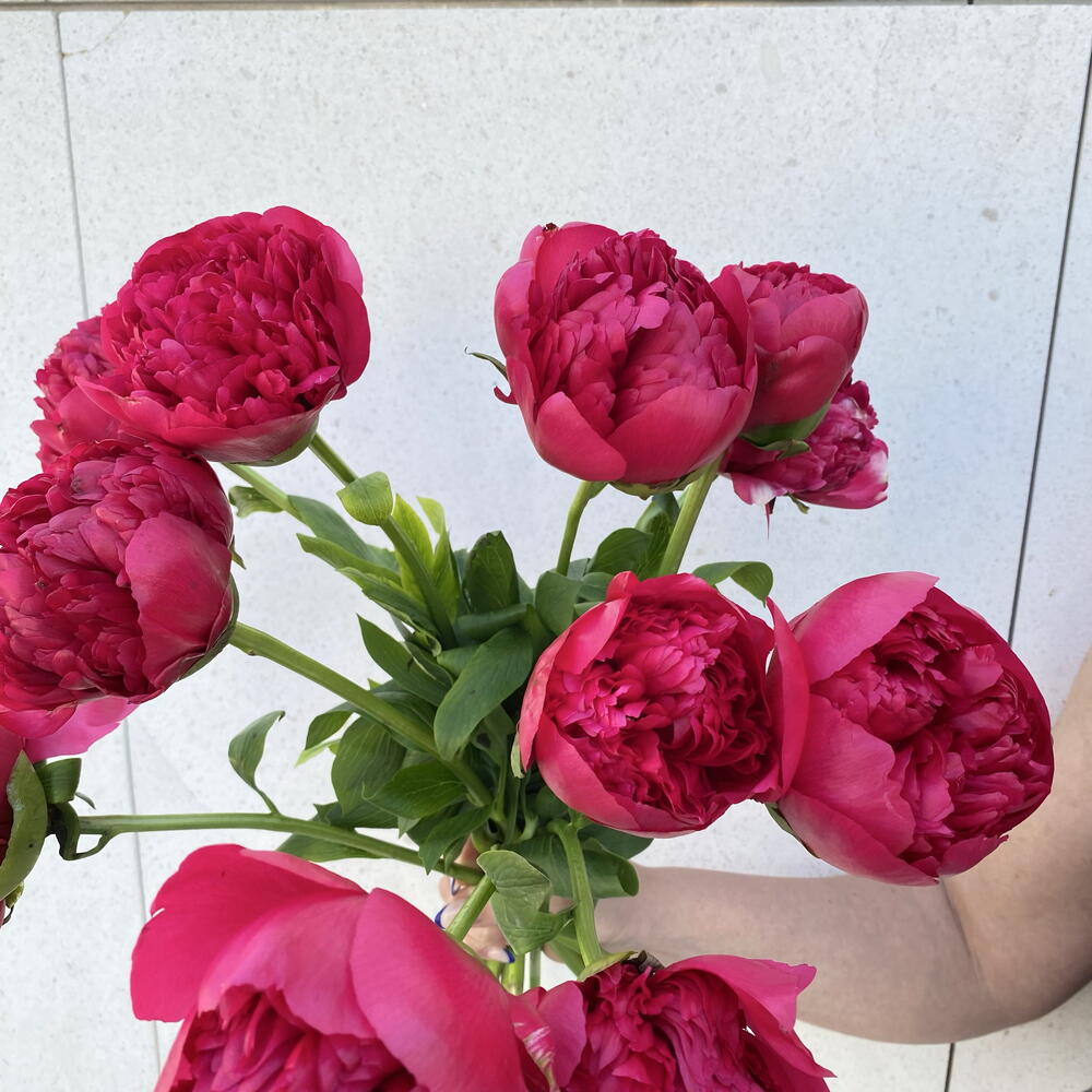 A lush bouquet of red and pink peonies, romantic and elegant, perfect for expressing love, beauty, and heartfelt emotions on any special occasion.