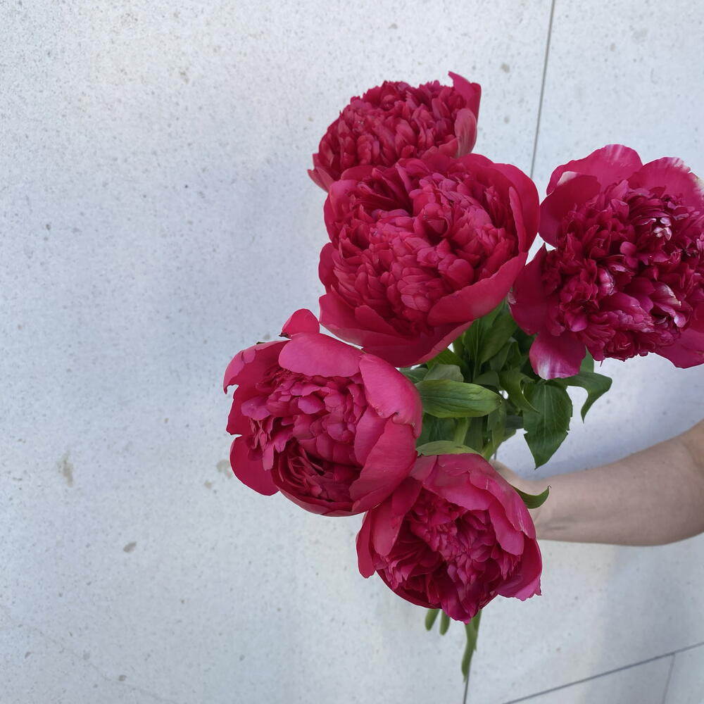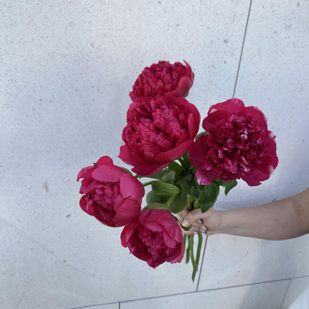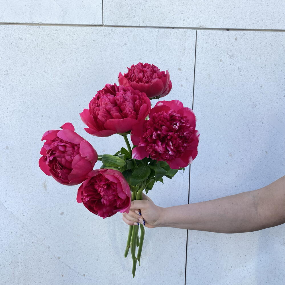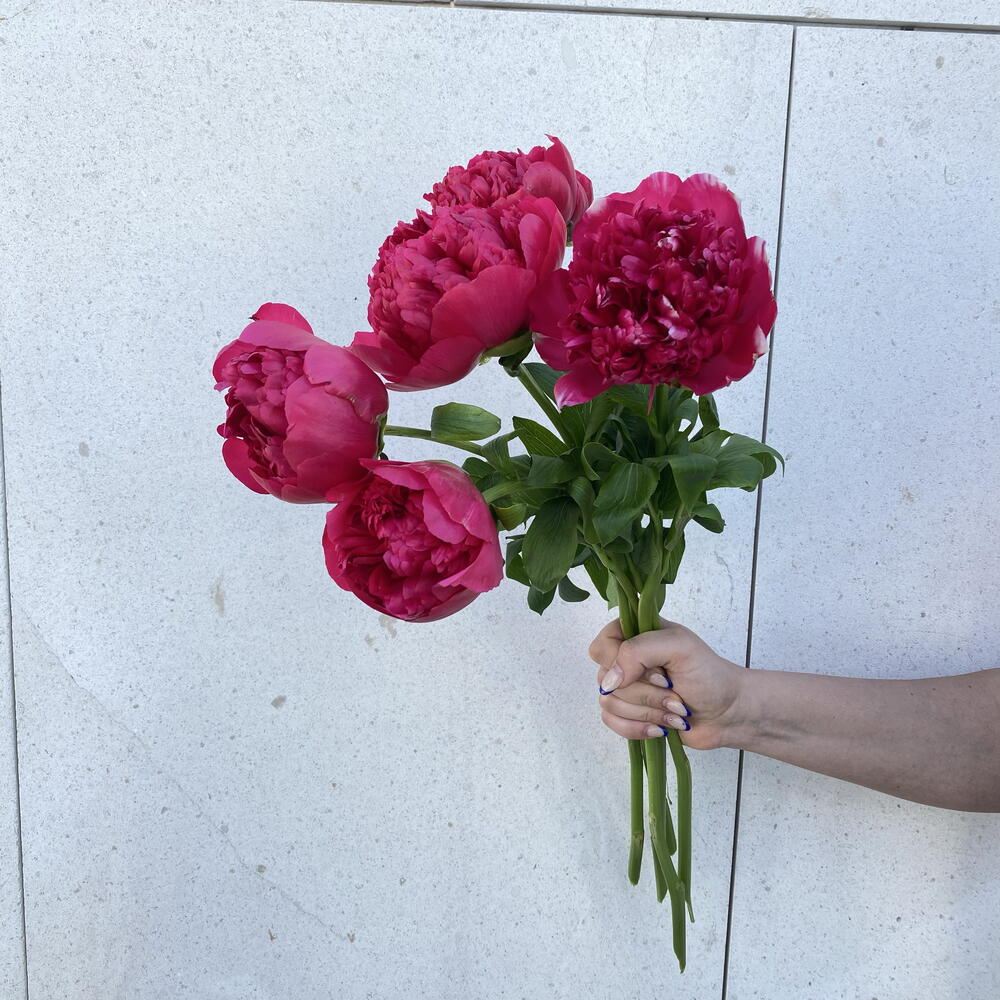 A lush bouquet of red and pink peonies, romantic and elegant, perfect for expressing love, beauty, and heartfelt emotions on any special occasion.