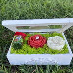 Introducing a wonderful signature set that will make a magnificent addition to your home or a perfect gift for someone special. This set includes two floral-scented candles that will fill your space with a soft, relaxing aroma. You'll also find a cute jar with a ladybug inside, a charming detail that features the word FAITH, a daily reminder to always maintain hope. The set is completed with a beautiful white trunk decorated with a delicate angel. This elegant storage accent adds a touch of sophistication to any decor. A truly exceptional set that combines beauty and functionality in perfect harmony.