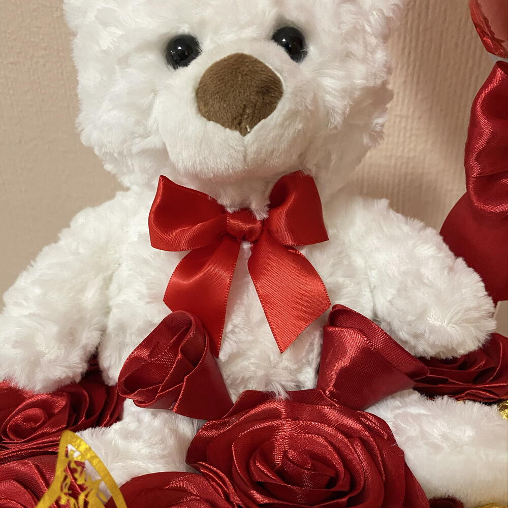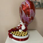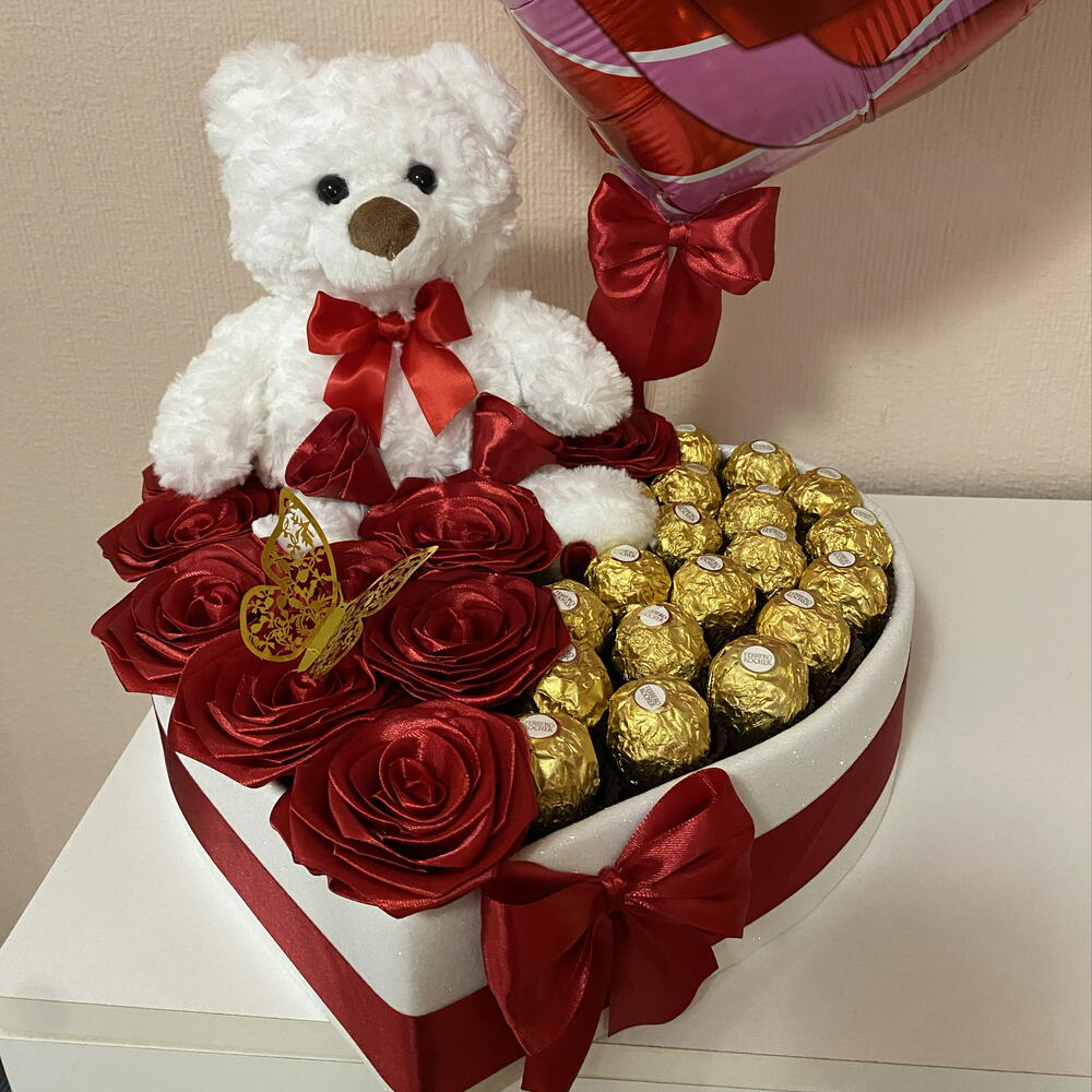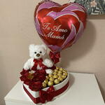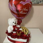 Ferrero rocher - 19 pcs decorative butterfly - 1 pcs rosas eternas - 11 pcs decorative heart-shaped box - 1 pcs balloon i love you mom - 1 pcs soft white plush teddy bear - 1 pcs