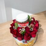 Gypsophila - 4 pcs roses - 16 pcs jar of Nutella - 1 pcs