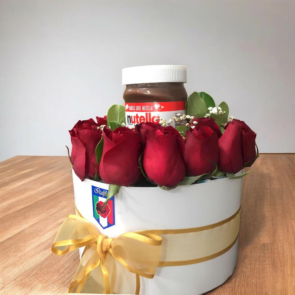 Gypsophila - 4 pcs roses - 16 pcs jar of Nutella - 1 pcs
