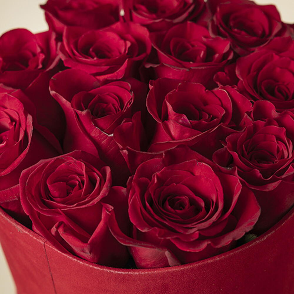 Caja de terciopelo con rosas rojas frescas (13-15)