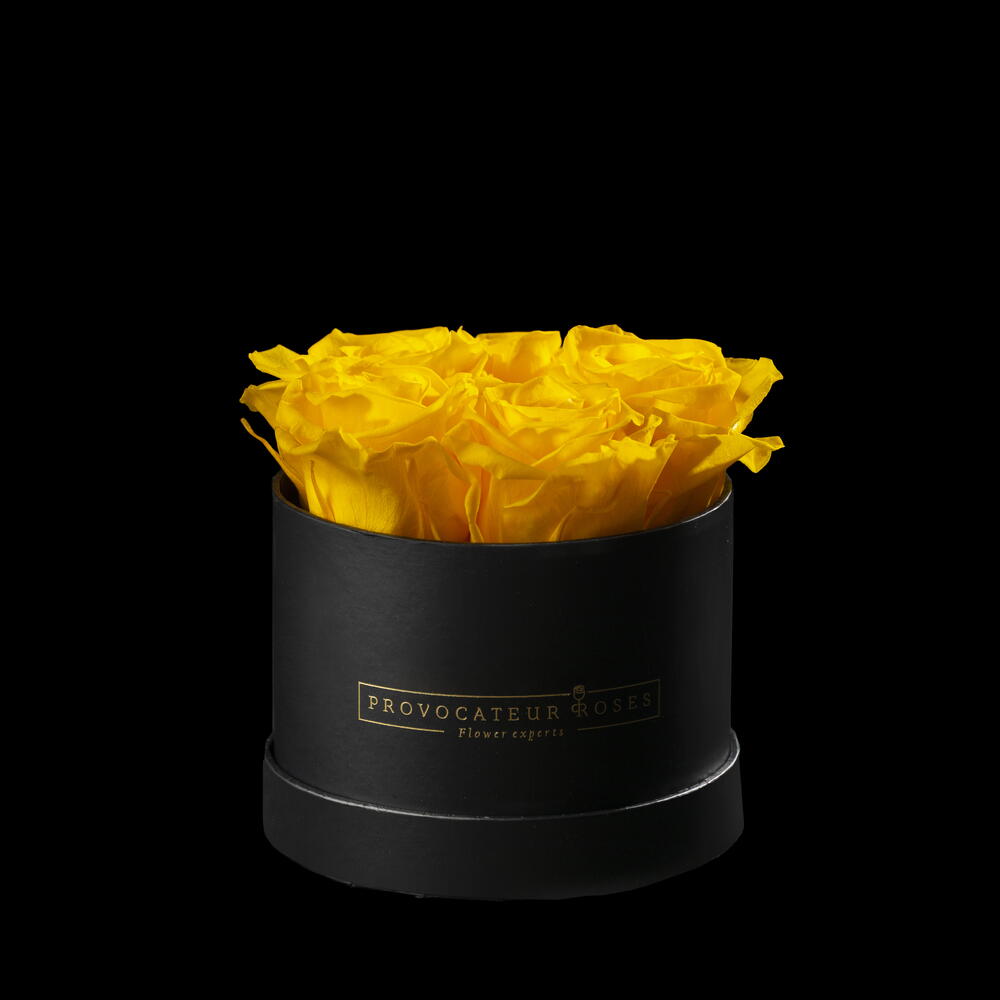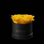 12cm round box of preserved yellow roses