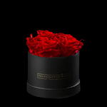 12 cm round box of preserved red roses