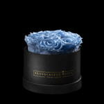 16cm round box of preserved baby blue roses