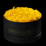 30cm round box of preserved yellow roses