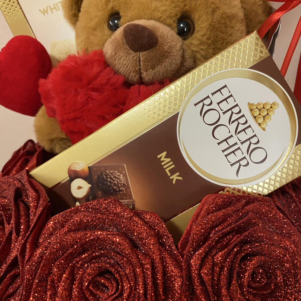 Romantic gift box with roses and Ferrero – Anniversary/ Surprise / Birthday