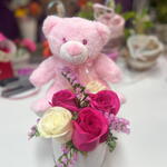 Este exclusivo pack de regalo está compuesto por 4 rosas rojas de máxima frescura, 4 claveles vibrantes y 1 tierno oso de peluche. Un regalo perfecto para cualquier ocasión que seguro llenará de alegría a tu ser querido.