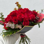 wrapping paper - 5 pcs greenery mix - 1 pcs red roses - 21 pcs