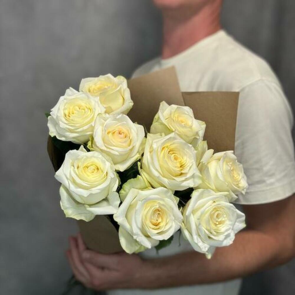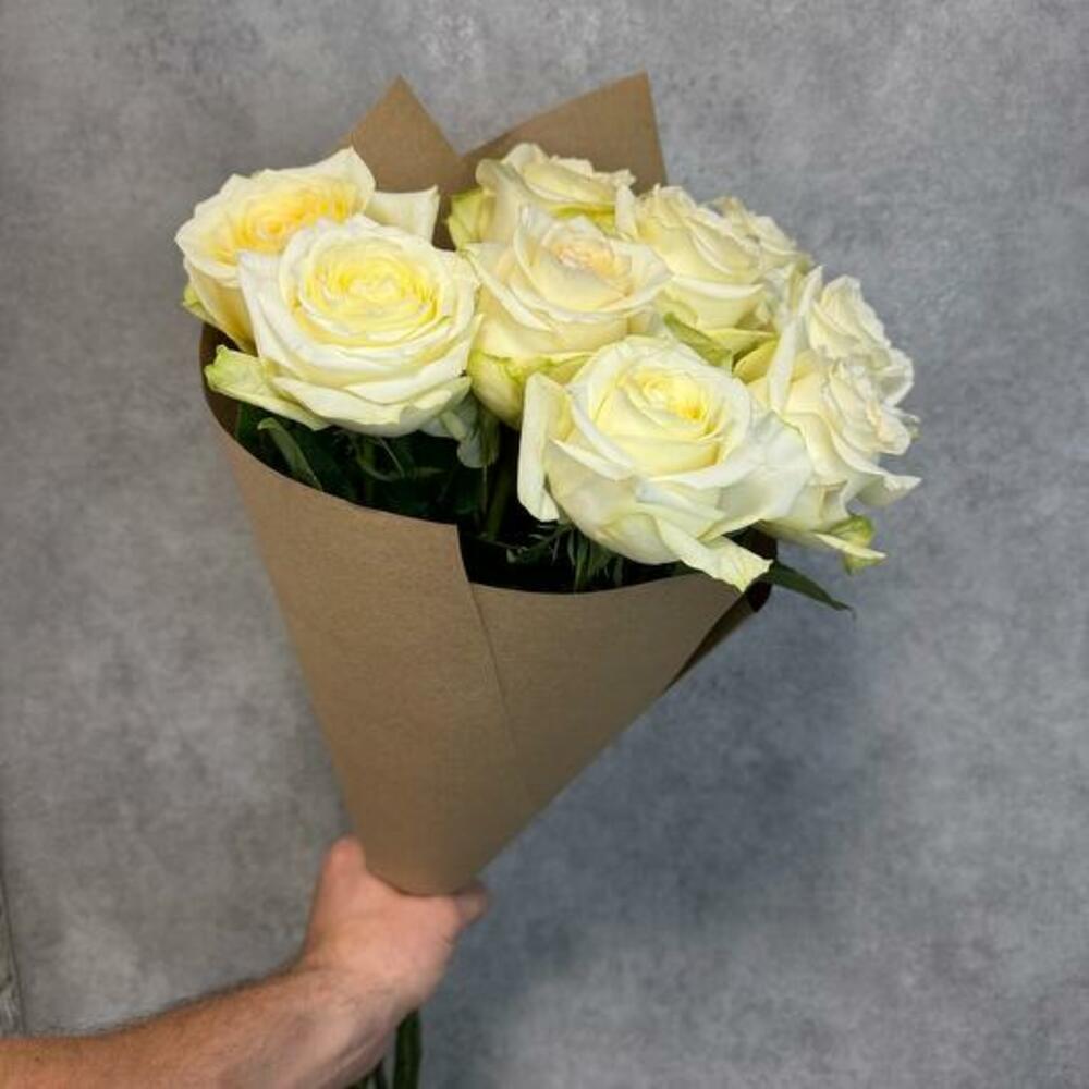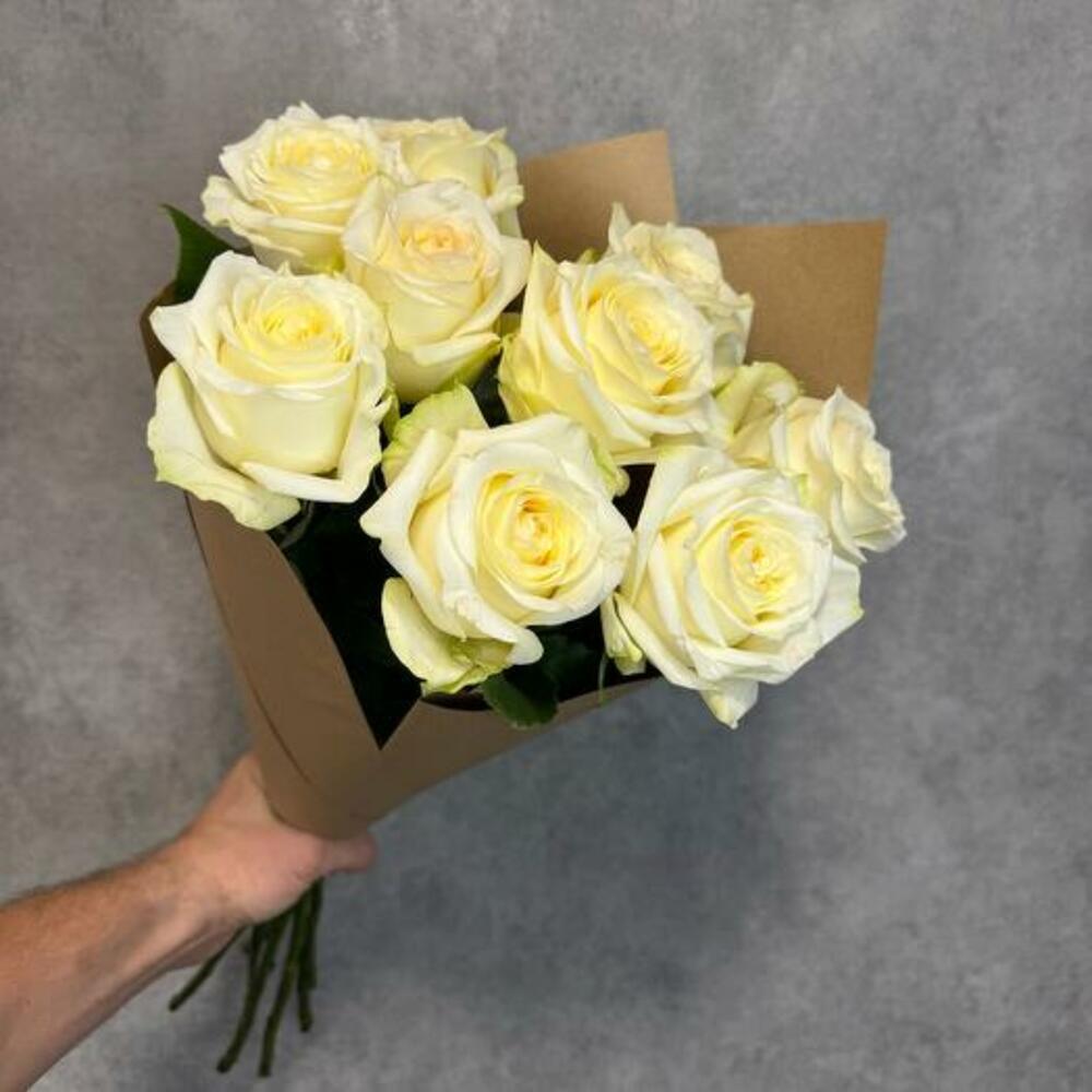 Simplicity meets elegance with our exquisite monobouquet of 9 pristine white roses. Each rose is carefully selected for its flawless beauty and pure white petals, symbolizing grace and admiration. Wrapped in kraft paper, this bouquet exudes a timeless charm and natural sophistication. Perfect for any occasion, whether it’s a romantic gesture, a celebration, or simply to brighten someones day, this bouquet of white roses is sure to make a lasting impression with its understated elegance.