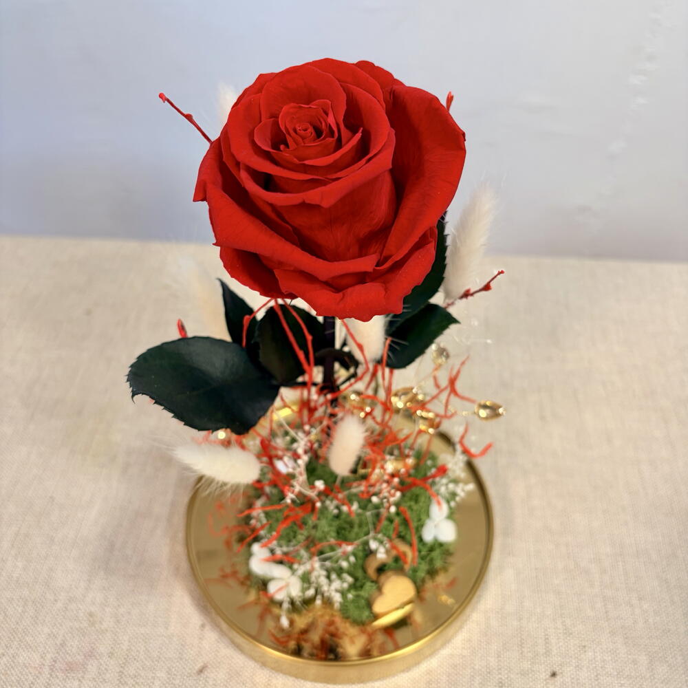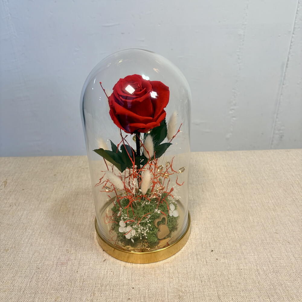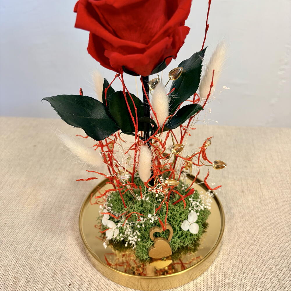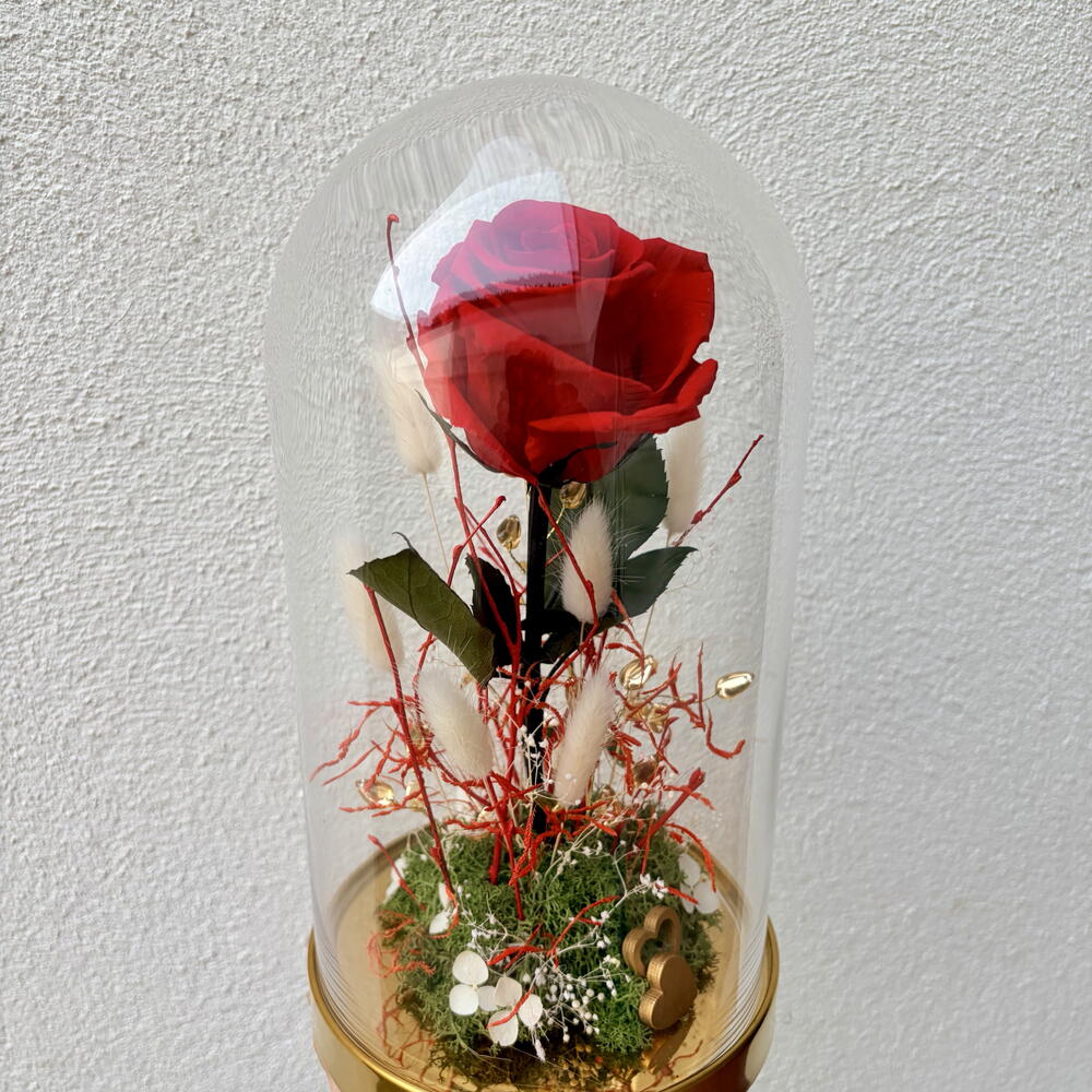 Eternal rose preserved - glass golden dome with gold accents and dried flowers