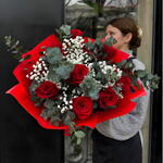 eucalyptus - 5 pcs paniculata - 5 pcs rosas rojas - 9 pcs