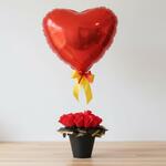Balloon with Red Rose Base | Balloons Romantic Gift with Heart-Shaped Balloon
