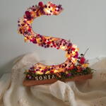 Handmade personalized decorative letter crafted with preserved and dried flowers, integrated with warm LED light. Each piece is made on a wooden letter decorated with flowers and is presented on a wooden base also decorated, personalized with the full name in wooden letters, making it a unique and special gift. It is ideal for decorating children's rooms, gifting for birthdays, births, communions, or special occasions. Features: Wooden letter decorated with preserved and dried flowers Integrated LED lighting Decorated wooden base with personalized name Handcrafted product, handmade As this is a handcrafted and personalized product, each piece may present slight variations while always maintaining the same style and quality. Preparation time 3-4 working days For urgent orders, contact us before making the purchase. Want to make it even more special? You can add chocolates as an extra detail in the final step of the purchase.