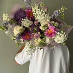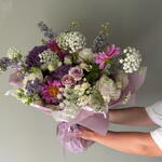 A summer bouquet in shades of violet and white colors.