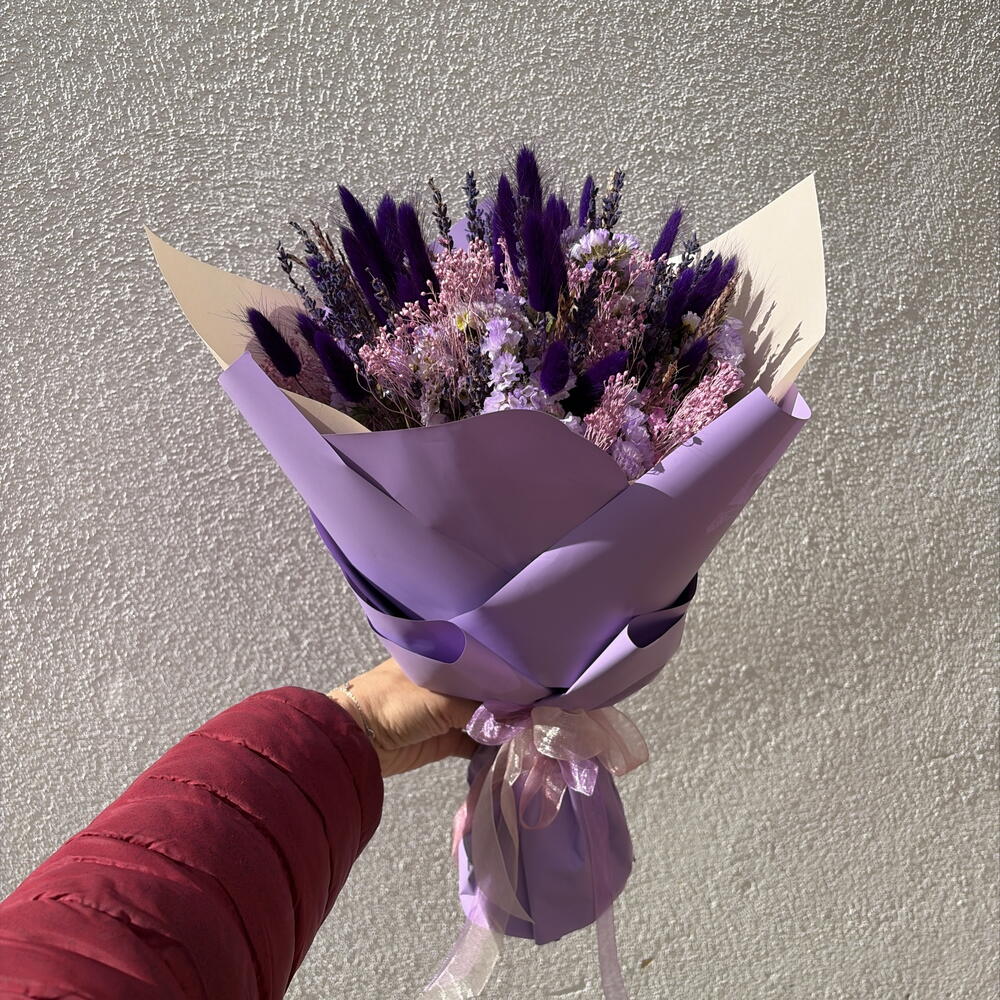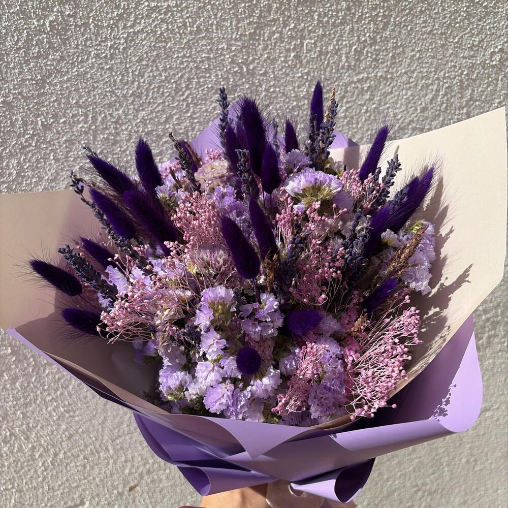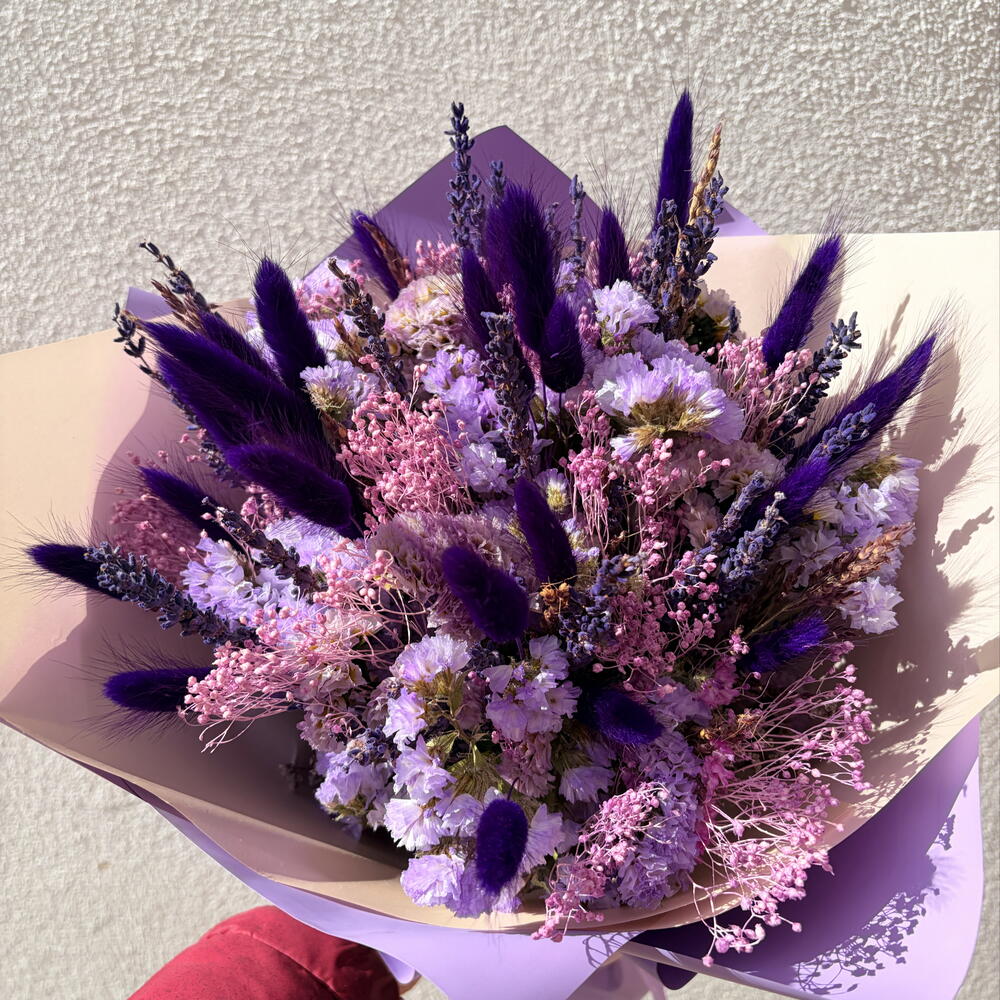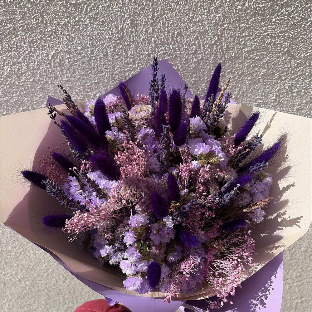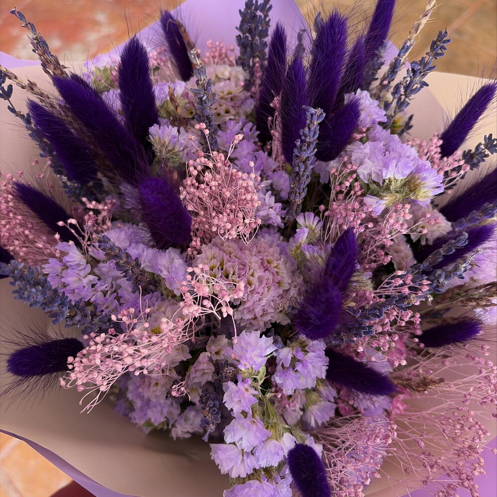 Statice - 15 pcs Limonium - 5 pcs lavender (dried flowers) - 20 pcs bunny tails grass - 15 pcs brooms preservado - 8 pcs