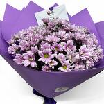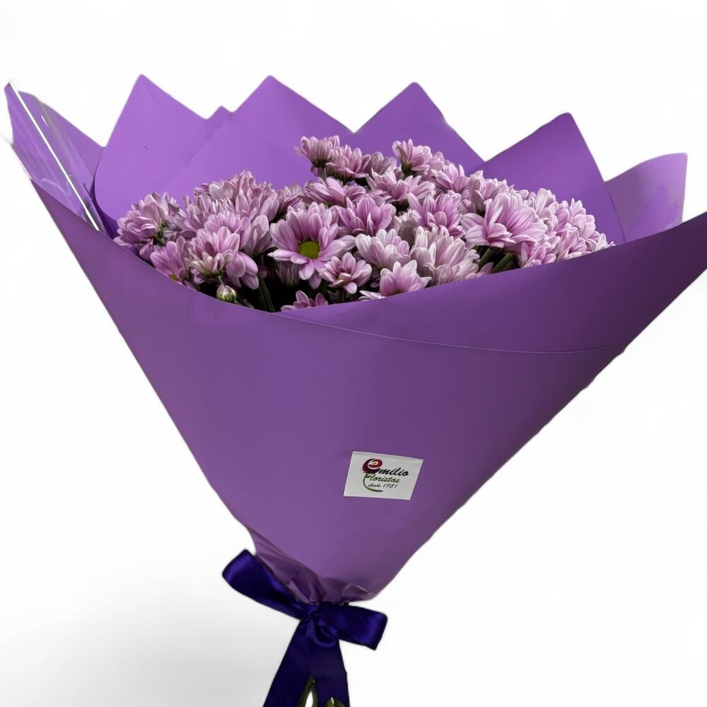 lilac daisies - 9 pcs cellophane - 1 pcs purple paper - 2 pcs purple bow - 1 pcs