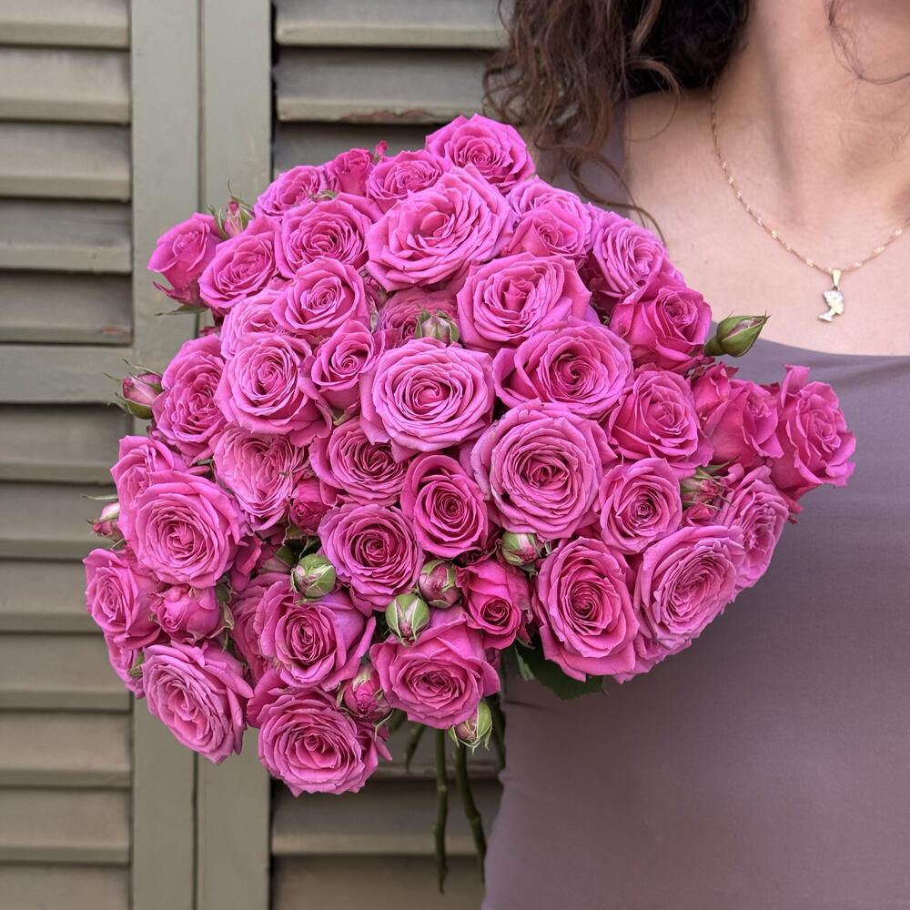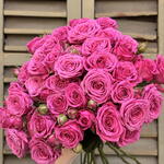 Classic bouquet of fuchsia roses that stands out for its intensity and freshness. The firm buds and the vibrant color express love and energy. An ideal option for an elegant gift full of emotion.