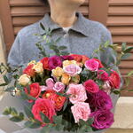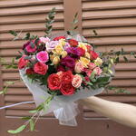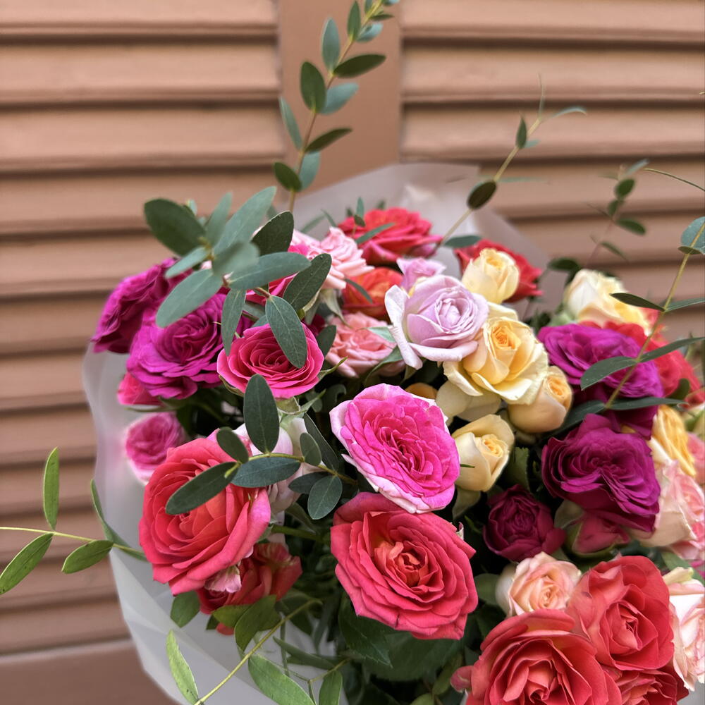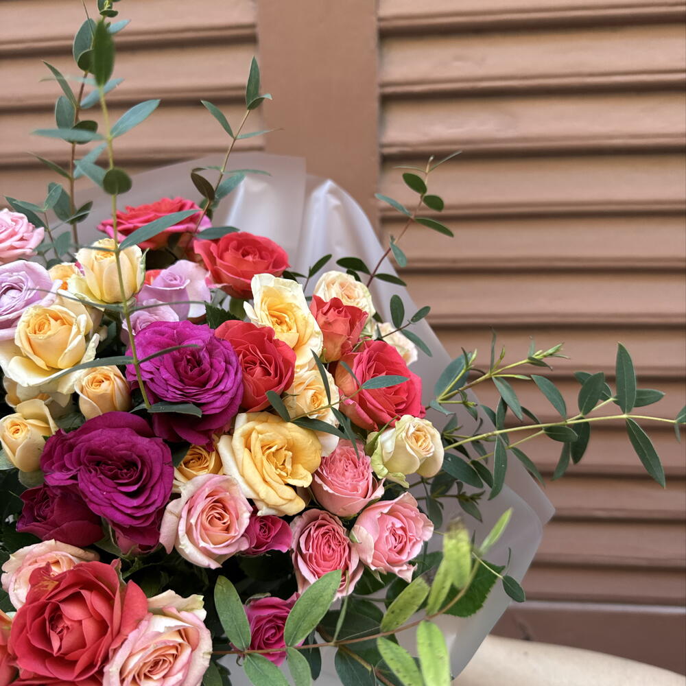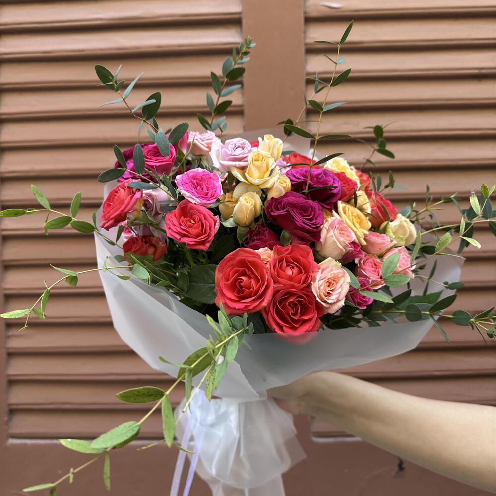 eucalyptus - 1 pcs mixed roses - 21 pcs