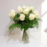 This classic bouquet combines the timeless elegance of 12 white roses with fillers and elegant greenery. It is the perfect gesture to express pure, noble feelings. Ideal for any occasion or just to brighten someone's day.