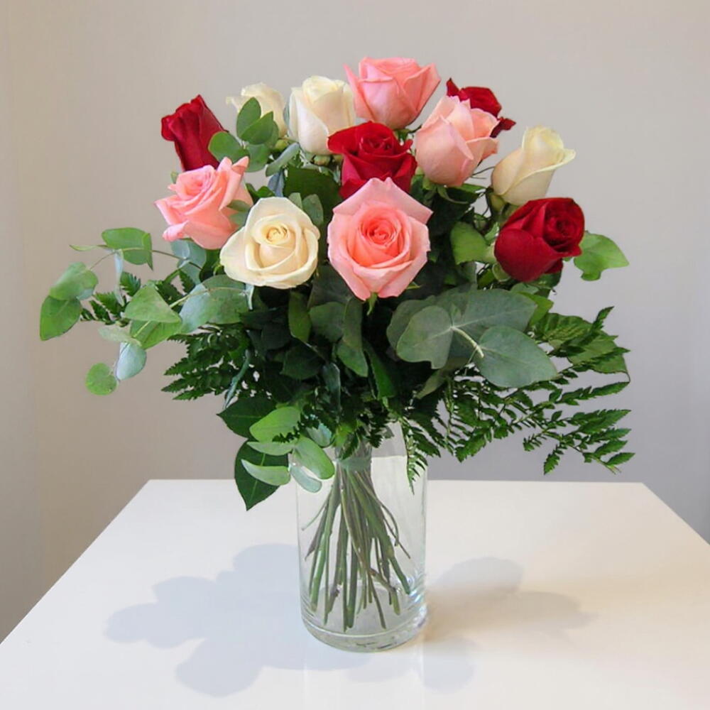 Bouquet of 12 multicolored roses