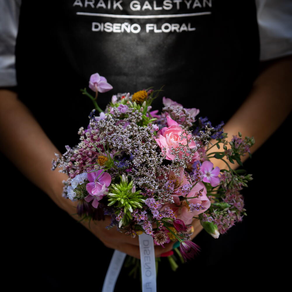 This classic bouquet is the perfect composition of elegance and nature. Composed of 2 stems of Limonium, which add a rustic and delicate touch, and 2 stems of chrysanthemums, known for their vibrant color and durability. It also includes 2 stems of Carnation, symbolic of love and admiration, along with 2 stems of Statice, which add a unique texture to the bouquet. To complete this floral masterpiece, 1 stem of Orchid is added, a symbol of beauty and sophistication. This bouquet is definitely an expression of good taste and style.