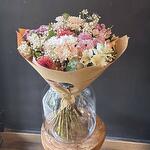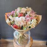 A delicate, romantic bouquet in soft pink, white and lilac tones that brings elegance and freshness to any space. Its mix of flowers creates a perfect visual harmony to celebrate birthdays, anniversaries or simply brighten the day. Place it in a vase with fresh water, trim the stems a little every two days, and avoid direct sunlight to prolong its beauty.