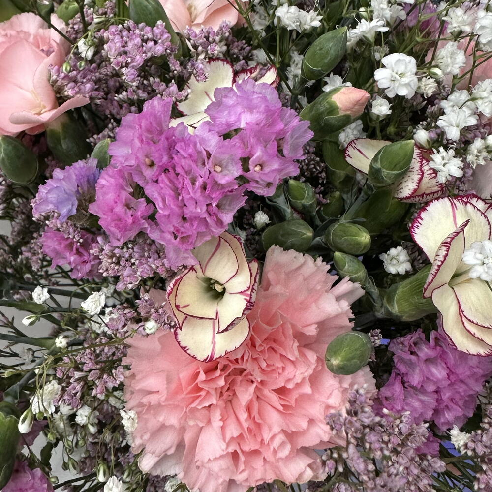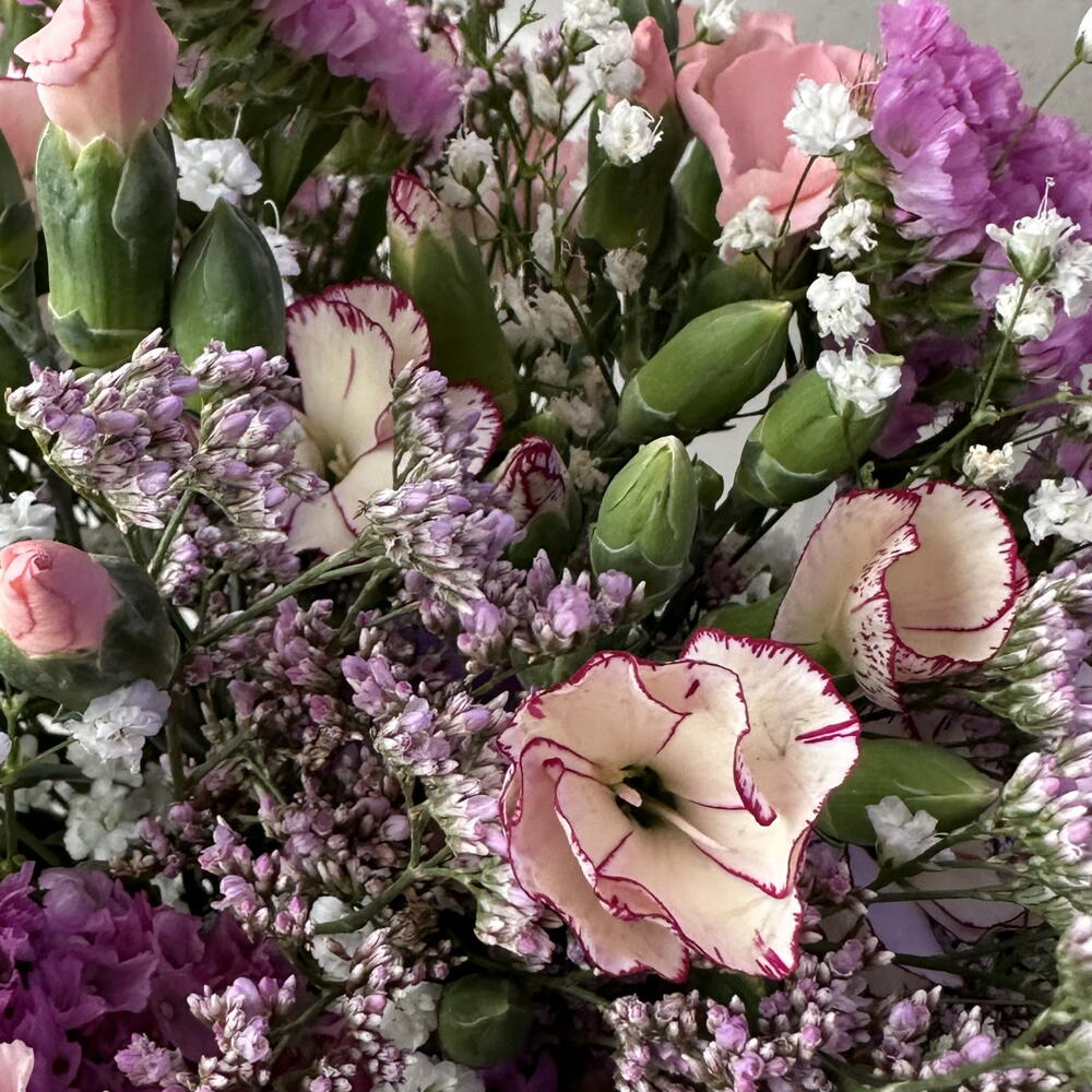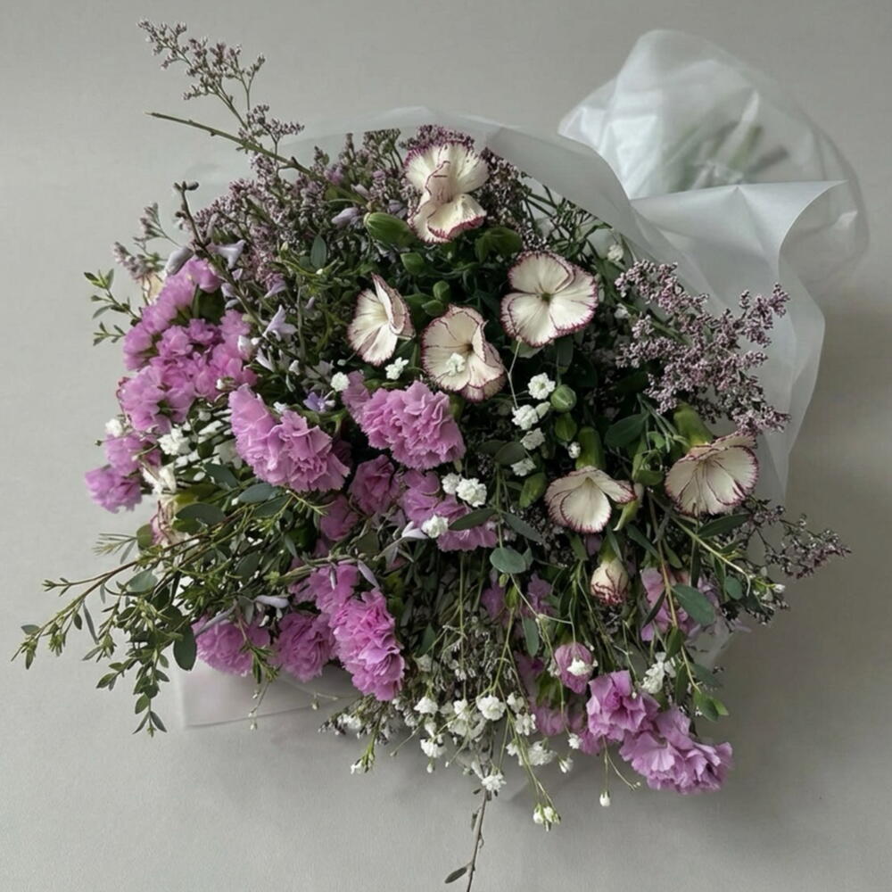 Statice - 3 pcs Limonium - 4 pcs eucalyptus - 1 pcs paniculata - 2 pcs clavel - 8 pcs