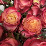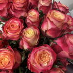 La rosa Mai Tai destaca por su apertura elegante y sus pétalos con degradados intensos, creando un efecto visual dinámico y sofisticado. El diseño del ramo resalta la fuerza del color y la frescura natural de cada flor, logrando una composición equilibrada y llena de personalidad.
