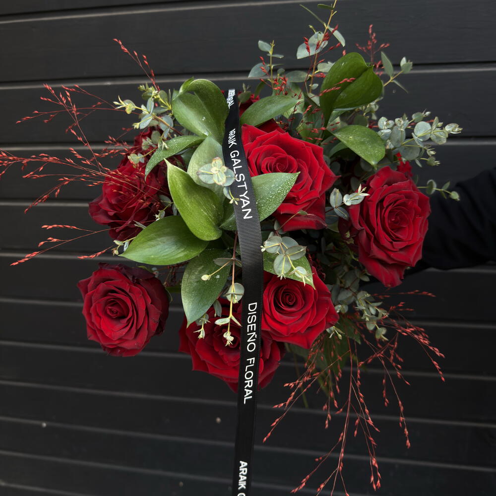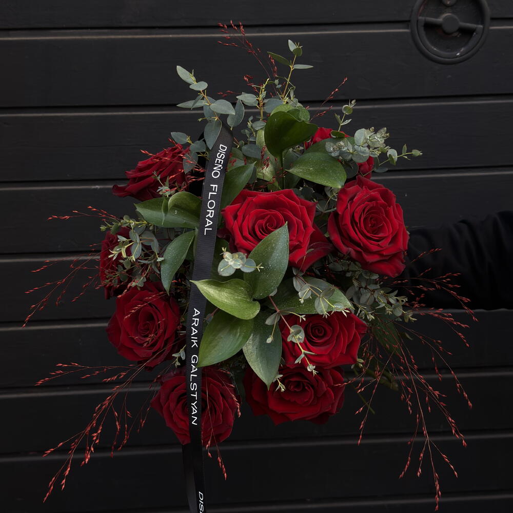 Bouquet of 9 red roses and eucalyptus ARAIK GALSTYAN
