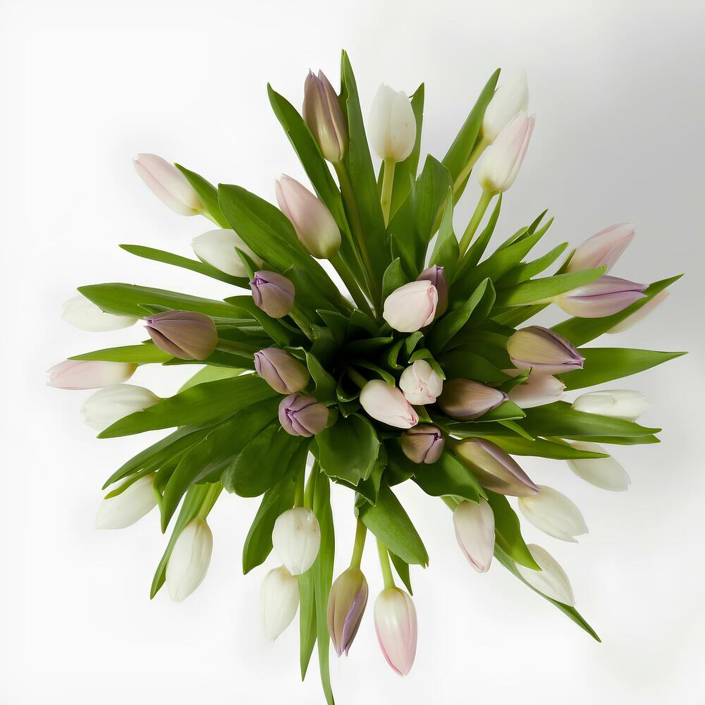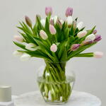 Discover the freshness and elegance of our tulips in a personalized bouquet, from 30 stems onwards. Symbols of comfort and happiness, tulips offer an explosion of color that adapts to your preferences. Celebrate every occasion with this sophisticated touch. Please note that colors may vary slightly throughout the season. Gift includes: From 30 stems, including a purple or lilac tulip, a pink tulip, and a white tulip. Bouquet height: 35 cm *Promise: Carefully crafted by our experts especially for you. Bouquets will arrive as fresh as possible as they are prepared on the same day of delivery. Prepared with love, delivered with care!