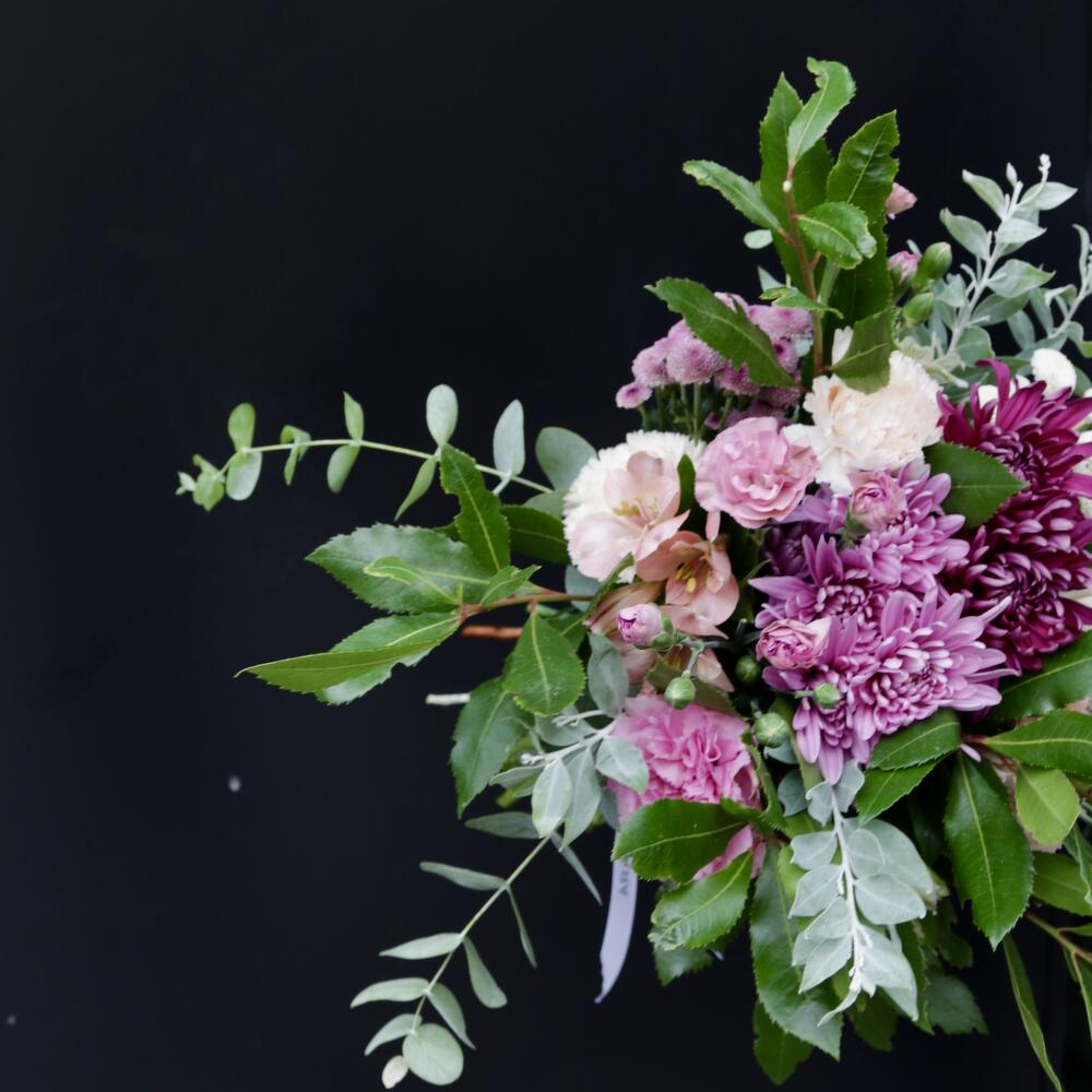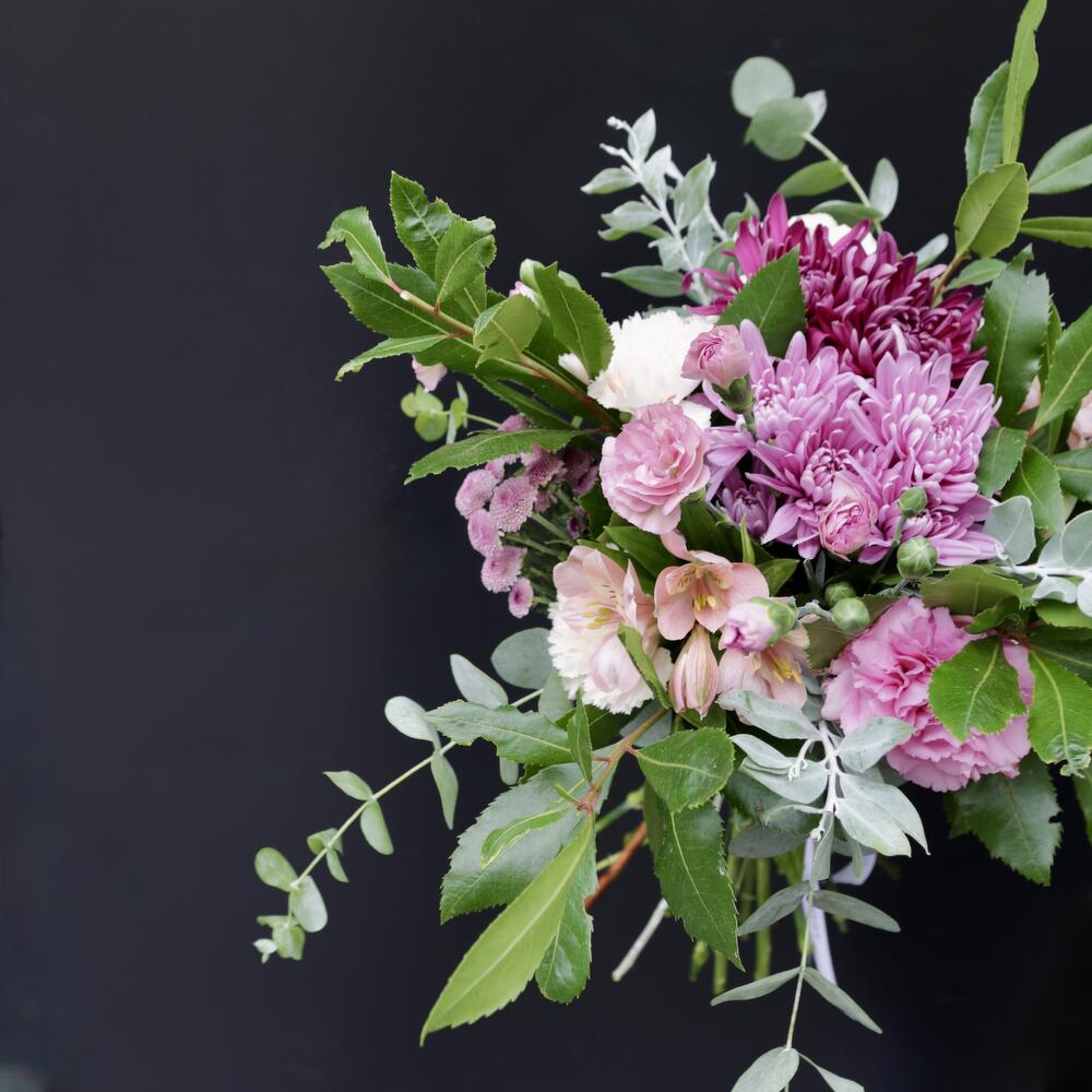 Alstroemeria - 3 pcs santini - 2 pcs eucalyptus - 1 pcs crisantemo - 2 pcs clavel - 9 pcs marfull - 1 pcs