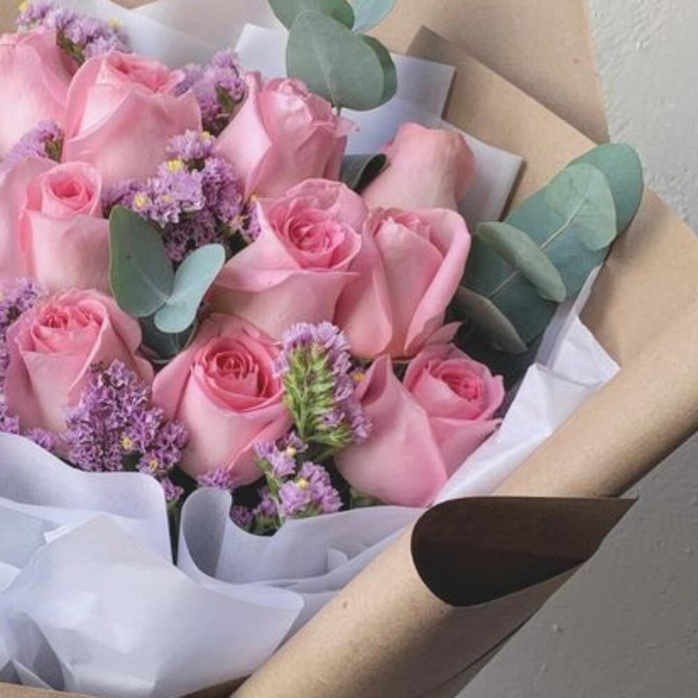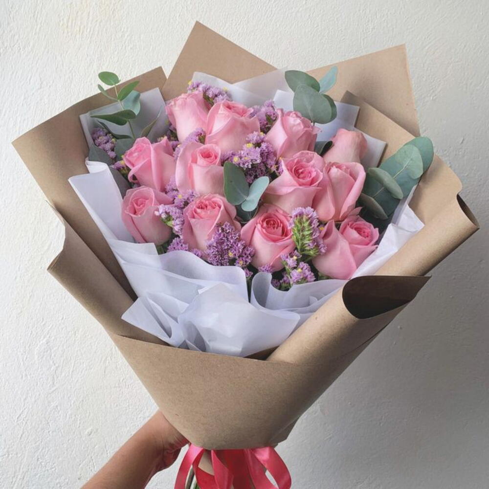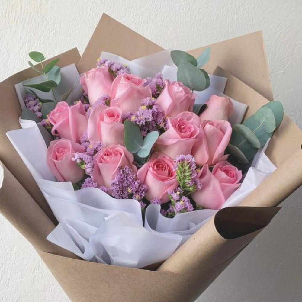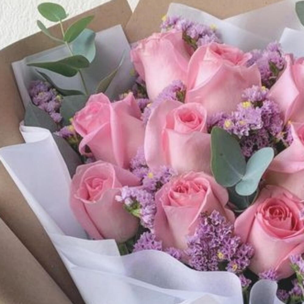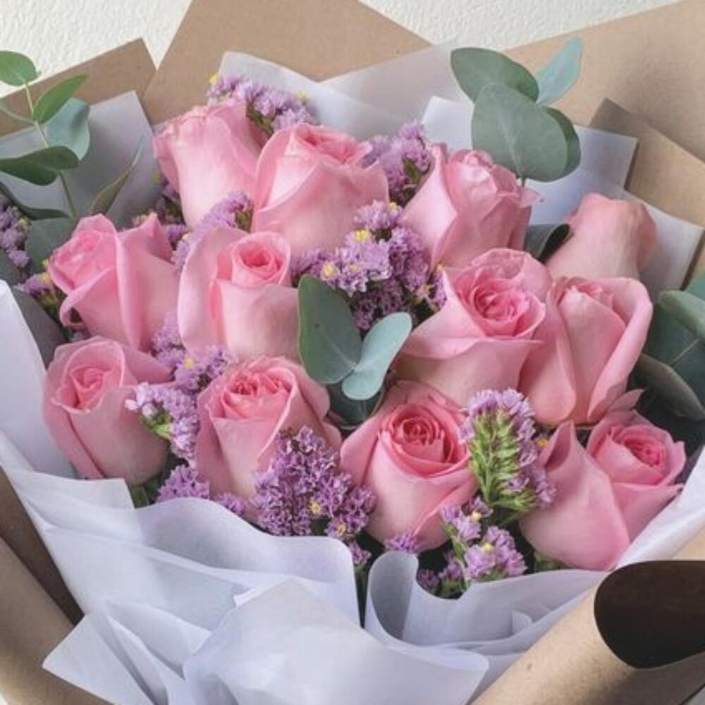 This marvelous classic bouquet is a true expression of elegance and sophistication. Composed of 12 pink roses, which symbolize fascination and admiration, and 4 everlasting statice, known for their long-lasting durability, this bouquet is designed to leave a lasting impression. The set comes beautifully wrapped in 2 sheets of magnificent decorative wrap to add that extra touch of class and style. An exceptional gift for any occasion.