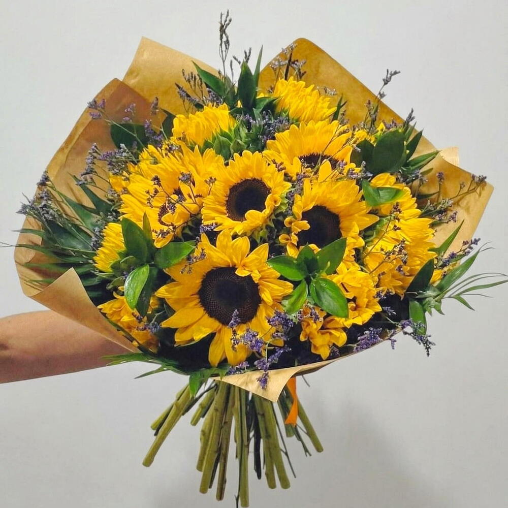 Ruscus - 6 pcs Limonium - 10 pcs girasol - 10 pcs