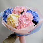 Ribbon - 1 pcs wrapping paper - 1 pcs hydrangea in assorted colors - 5 pcs