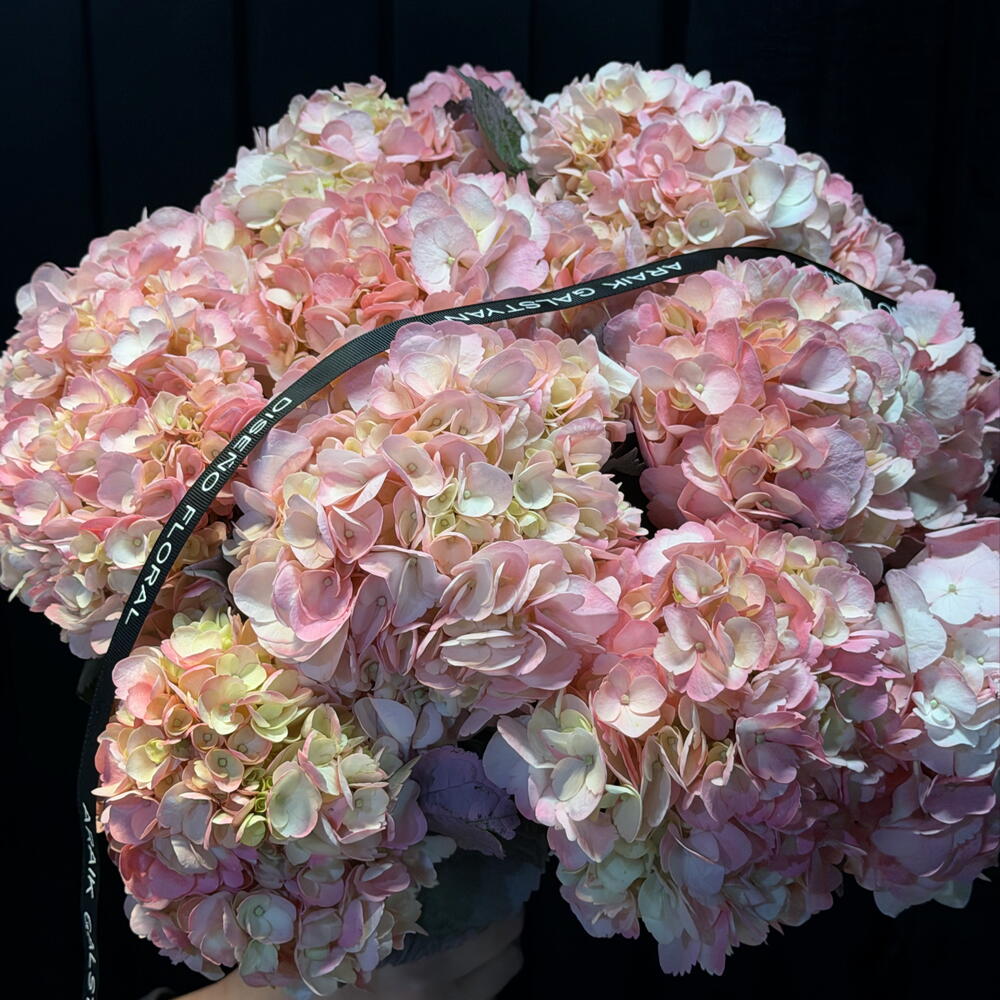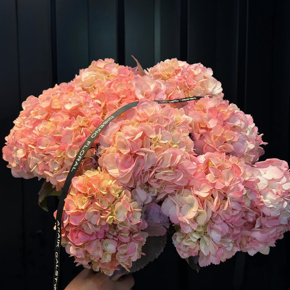 Premium bouquet composed exclusively of selected hydrangeas in pink, blue and burgundy tones. A voluminous, elegant and sophisticated arrangement, ideal for special gifts or for decorating spaces with a touch of luxury. Its handcrafted structure and its blend of deep colors create an imposing and timeless bouquet.