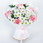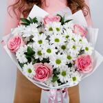 This exclusive designer bouquet will be the center of attention on any special occasion. It includes seven vibrant daisies and five roses adorned with foliage. All of it is harmoniously arranged and carefully wrapped in elegant packaging. Delight your loved ones with this refined and elegant bouquet, an impressive combination of classic and contemporary floral trends.