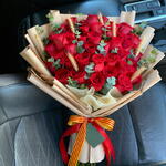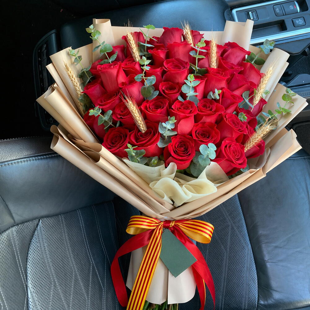 eucalyptus - 1 pcs spike - 1 pcs red roses - 30 pcs