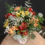eucalipto cinerea - 3 pcs paniculata blanca - 3 pcs feathery fern - 2 pcs multicolor alstroemeria - 8 pcs