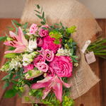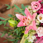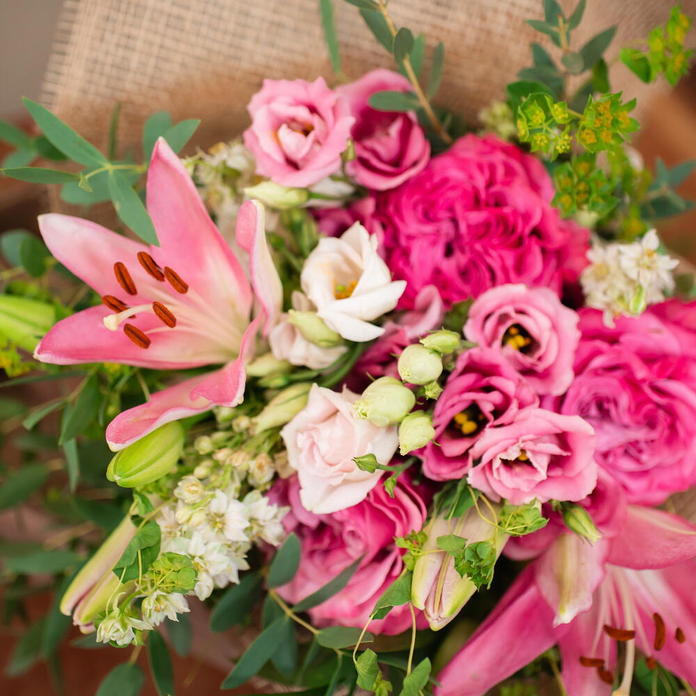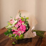 Ruscus - 4 pcs Lisianthus - 3 pcs liliums - 3 pcs roses - 3 pcs buplerium - 3 pcs