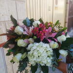 alstroemerias - 3 pcs roses - 5 pcs lirios - 4 pcs hortensias - 1 pcs verdes variados - 16 pcs yellow filler flowers (solidago) - 2 pcs