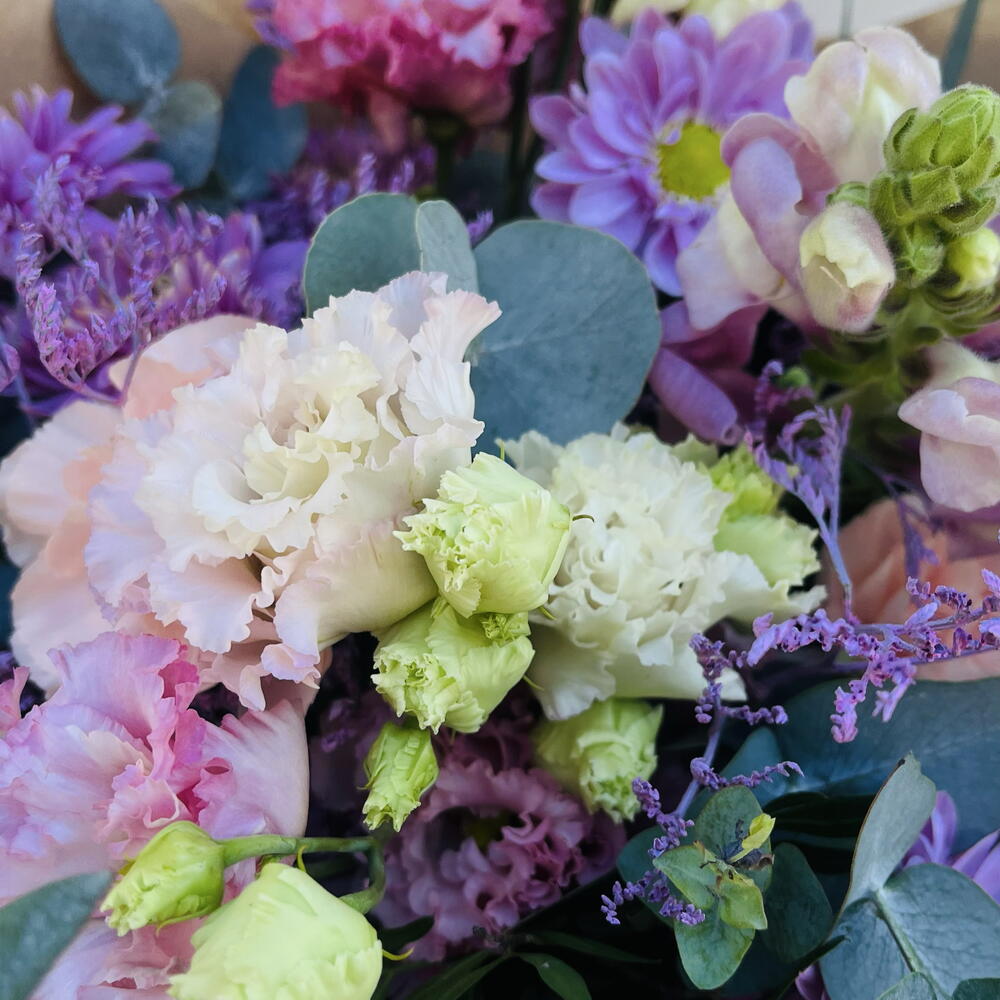 Ramo floral en tonos pastel con mezcla de flores delicadas y silvestres, combinado con eucalipto y texturas ligeras. Un diseño fresco, romántico y lleno de movimiento, ideal para sorprender con elegancia natural. 💐