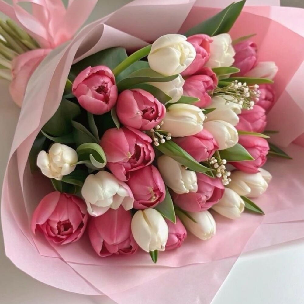 tulipanes blancos - 20 pcs tulipanes rosados - 20 pcs