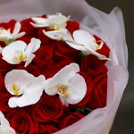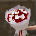 Elegant and classy bouquet of red roses and white orchid. Elegant and classy bouquet of red roses and white orchid. Elegant and classy bouquet of red roses and white orchid.
