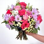 Discover the harmonious signature floral composition. The arrangement includes 2 pink oriental lilies, which symbolize purity and femininity. Intertwined with them are 3 white daisies, which bring a sense of tranquility and peace. 6 pink carnations are added to give a touch of tenderness and affection. To add variety to the bouquet, it includes 8 pink alstroemerias, which symbolize happiness and lasting friendship. Everything is complemented by 4 delicate pink roses, a symbol of gratitude and esteem. As a base for this floral display, a mix of assorted greens is used. This majestic floral arrangement will convey a message of love, admiration and respect without words. The perfect gift to surprise that special someone.