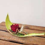 rosa preservada - 1 pcs moss - 1 pcs espigas preservadas - 2 pcs green coconut leaf - 1 pcs