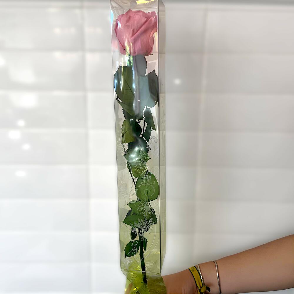 Preserved pink rose long stem