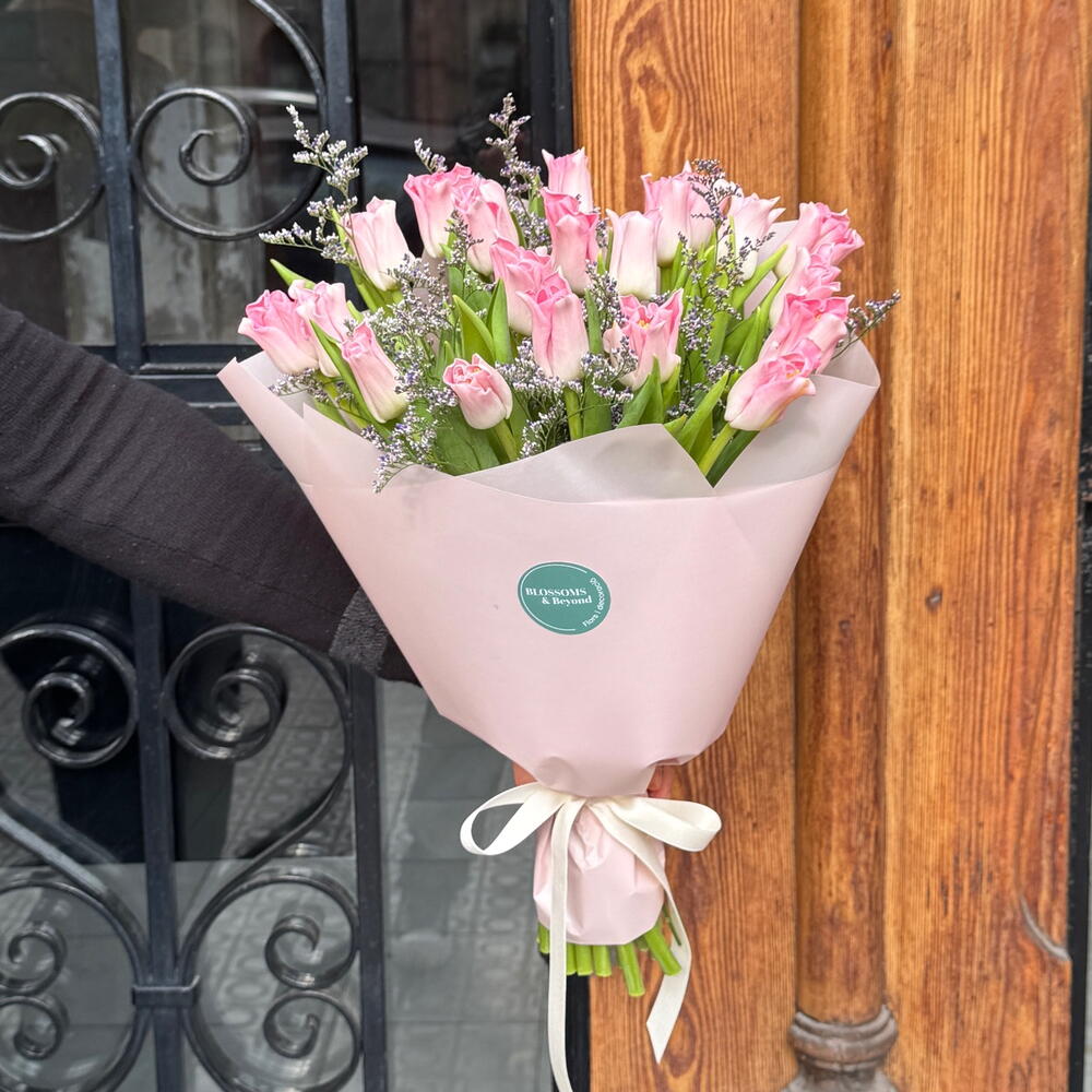 Rosy Bliss Tulips - Ramo de 20 Tulipanes y Limonium