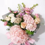 This charming Classic Bouquet is a magnificent combination of flowers, perfectly arranged to create a harmonious and exquisite composition. It is composed of 2 units of the elegant hydrangea, 7 units of carnations, full of color and fragrance, and 3 roses, which symbolize love. We add 2 units of veronica to give a spark of freshness and 2 units of snapdragon to accentuate its unique beauty. Finally, 6 units of foliage are added to provide a beautiful green contrast. This bouquet is a perfect choice for any occasion that deserves a special celebration.